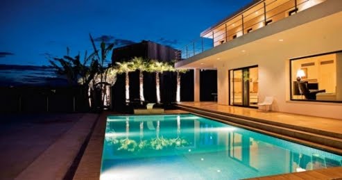 The house is elegantly positioned on a hillside and has several large terraces and many windows to capture as much natural light as possible. There are also pools four feet on the ground floor near the house. Two teenagers from the owners like to jump in it from the terrace on the first floor. There are 600 years old olive and banana trees planted around the house. Inside, there are many pieces of beautiful designer furniture and elegant. This house is owned by Danish furniture designer Morten Georgsen and is located in Valencia, Spain. looks spectacular is inspired by furniture that Morten is designed for BO Concept. Area where the house is located has 320 sunny days year, so many things in design that is optimized to use it.